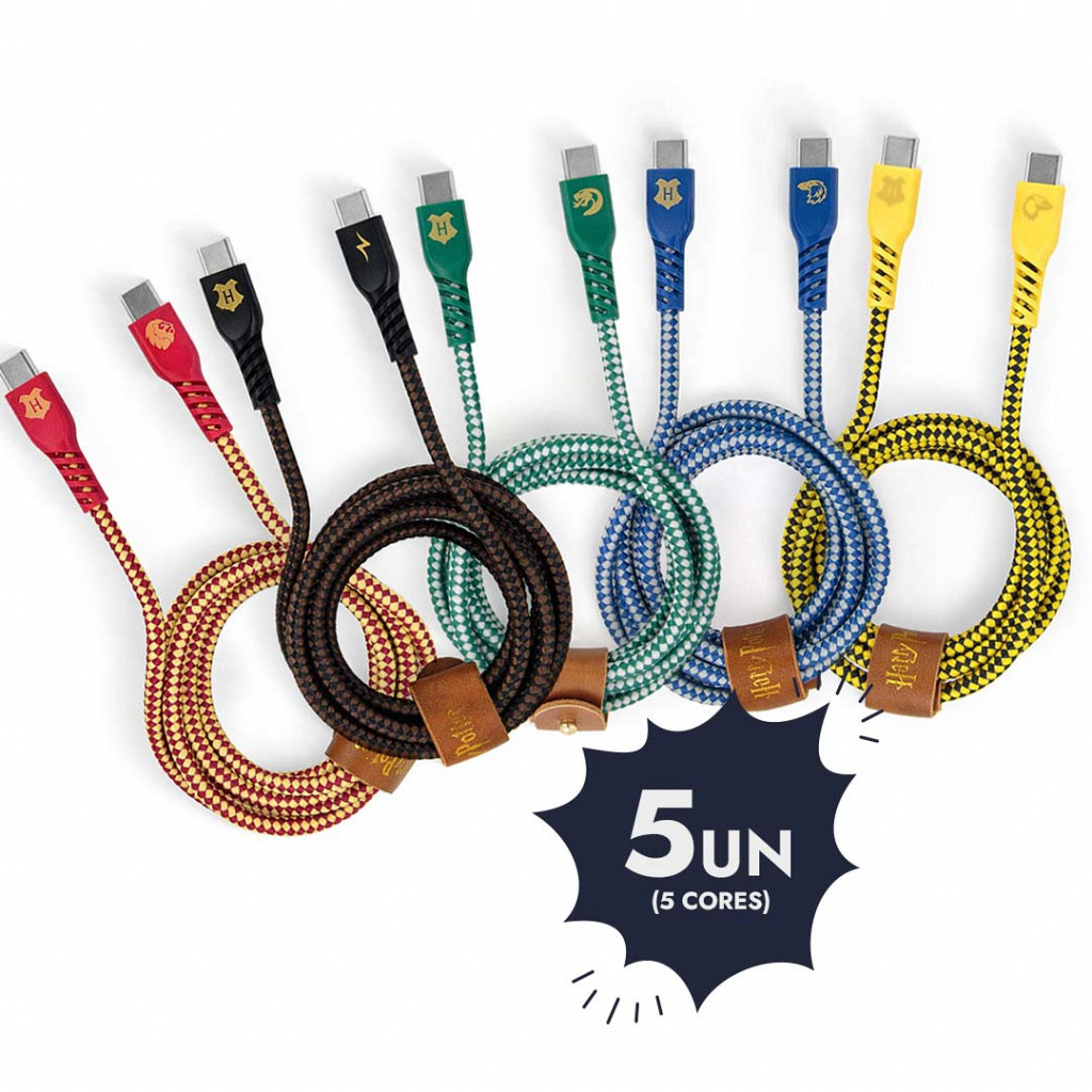 Ao comprar este combo, você leva fones, kits, carregadores e cabos USB-C temáticos das casas de Hogwarts, pagando muito menos do que na compra individual. É o equilíbrio perfeito entre apelo emocional da marca Harry Potter e alta conversão no ponto de venda.